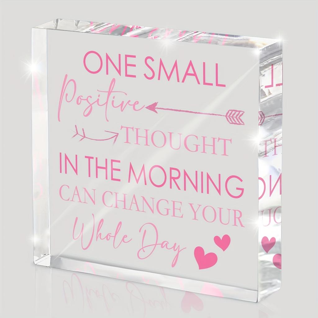 One Small Positive Thought in the Morning Can Change Your Whole Day Acrylic Sign - Pink Letter Motivational Desk Decor, Suitable