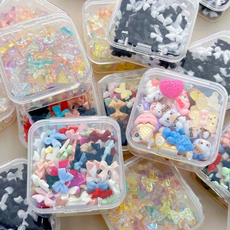 1Box Mixed Ribbon Bow Nail Charm Resin Cartoon Nails Decoration Nail Art Diy Nails Accessories Stereoscopic