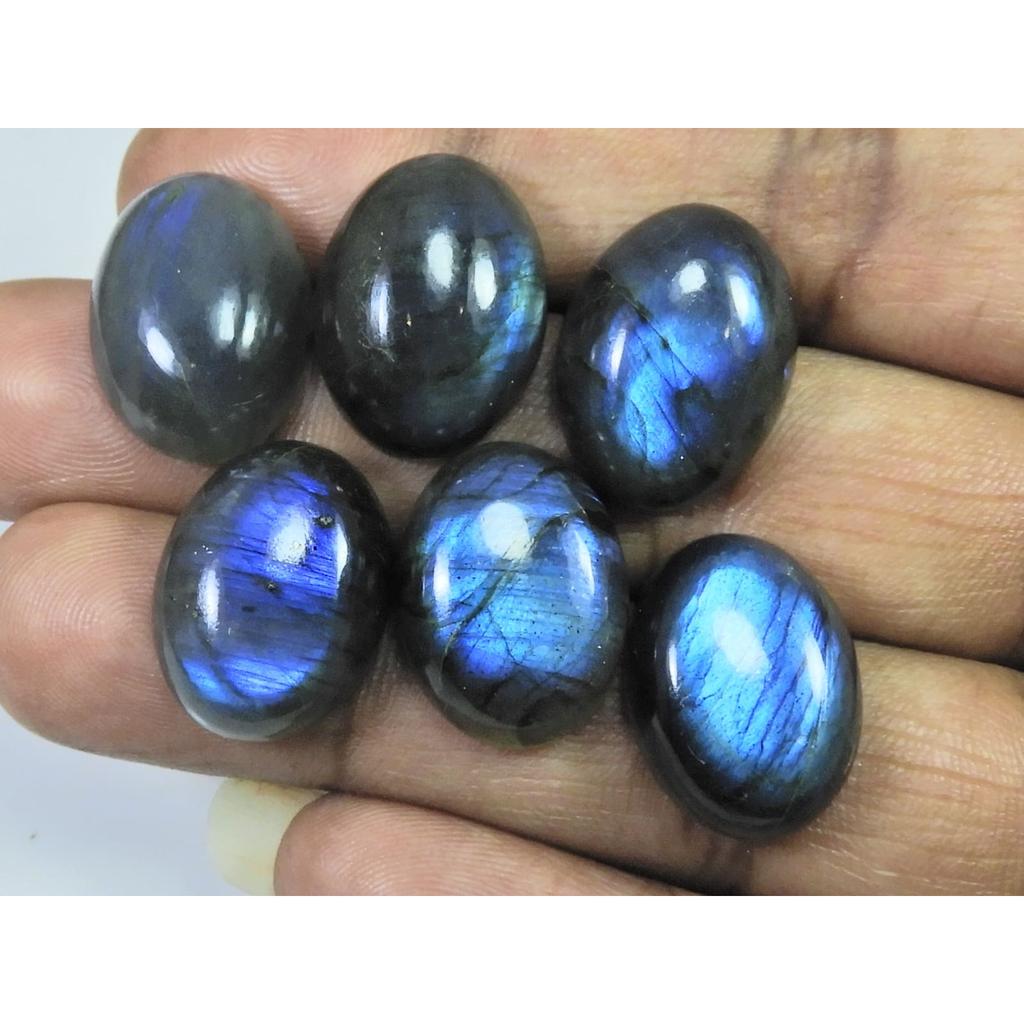 15X20MM Natural Labradorite Blue Fire Oval Cabochon Loose Gemstone 06Pcs Lot C-1065