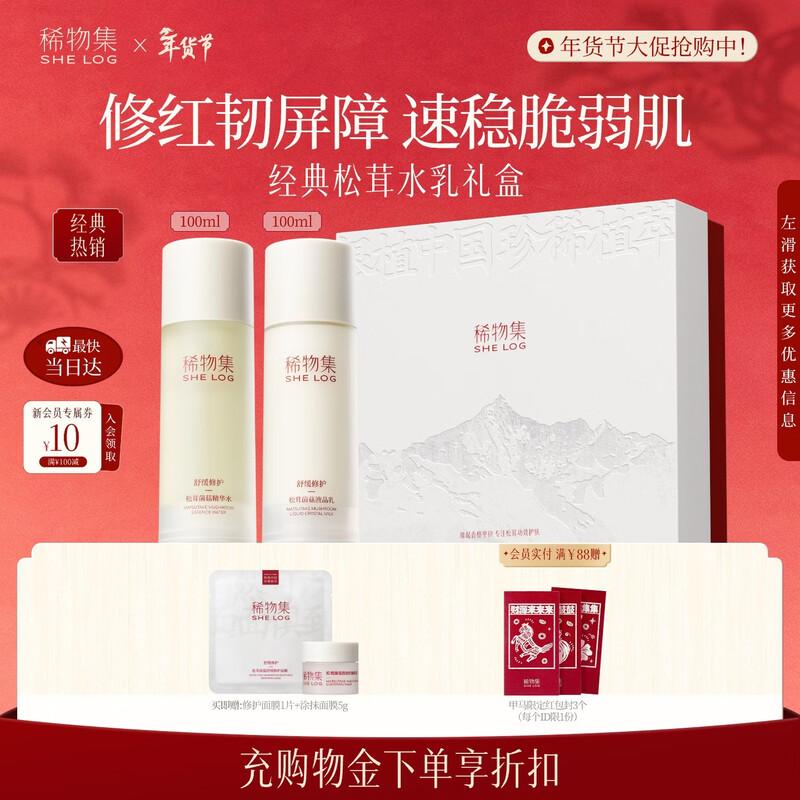 The She Log Matsutake Skincare Gift Set offers a gentle, plant-based formula designed to soothe, repair, and intensely hydrate your skin. This set is suitable for normal skin types, providing comprehensive moisturizing and soothing benefits for a healthy, radiant complexion.