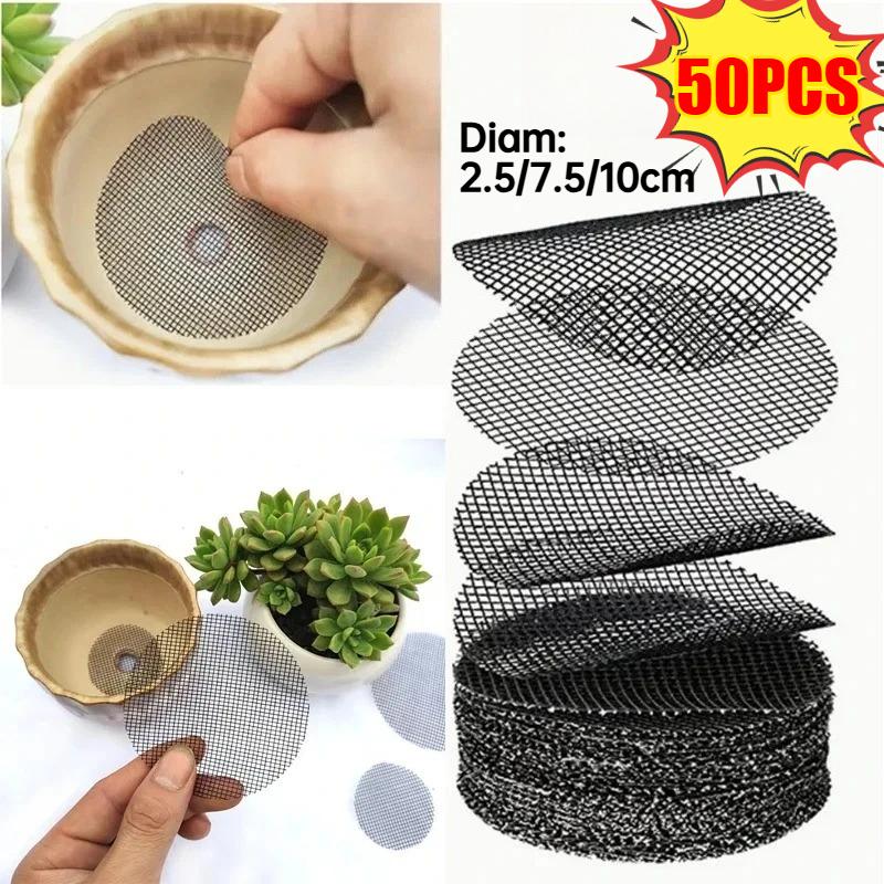 50Pcs Flower Pot Hole Mesh Pads Keep Soil In and Drainage Out Plant Trays For Pots Planter Tray Gardening Supplies