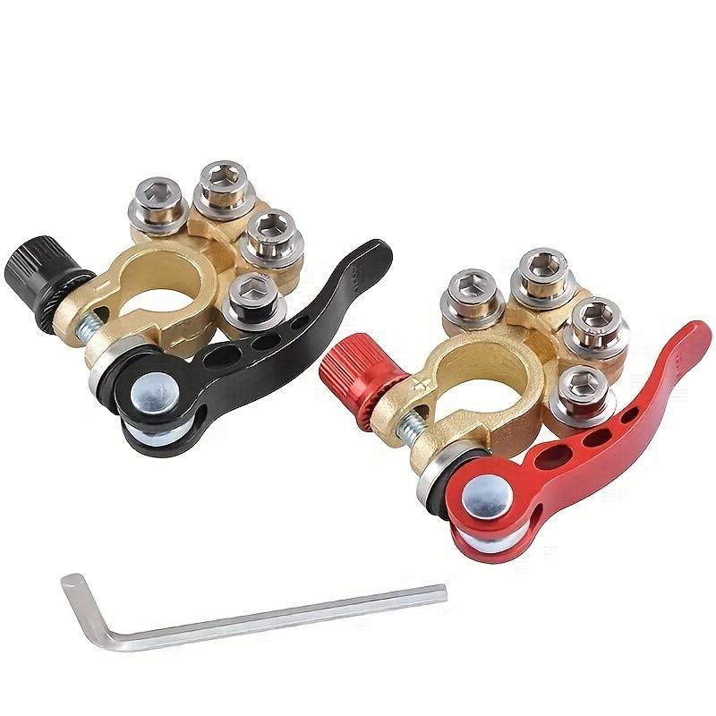 2pcs Heavy Duty Brass Battery Terminal Connectors - 4-Way Quick Disconnect for Cars, Trucks & Boats