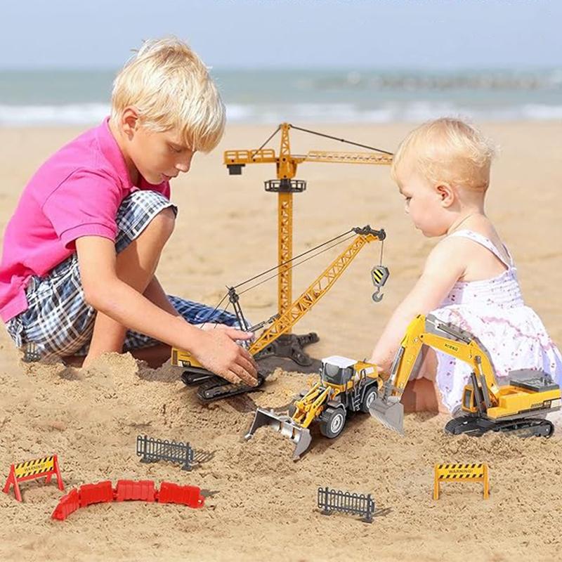 1:55 Alloy+Plastic Tractor Excavator Bulldozer Crane Truck Model Diecast Engineering Vehicle Toys for Children Collection Gifts