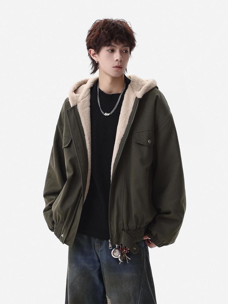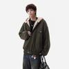 Zuoshan Diao Men's Hooded Cotton Jacket: Winter Velvet, Thick, Loose Fit, Youthful Trendy American Workwear Style.