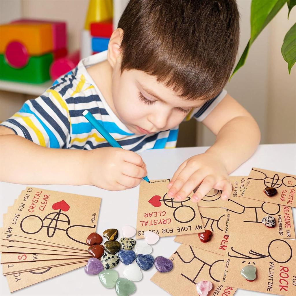 Çocuklar İçin Sevgililer Günü Hediyeleri - Kalp Şeklinde Plastik Kalp Şeklinde Malzemeli 24 Paket Sevgililer Günü Kartı Sevgililer Günü