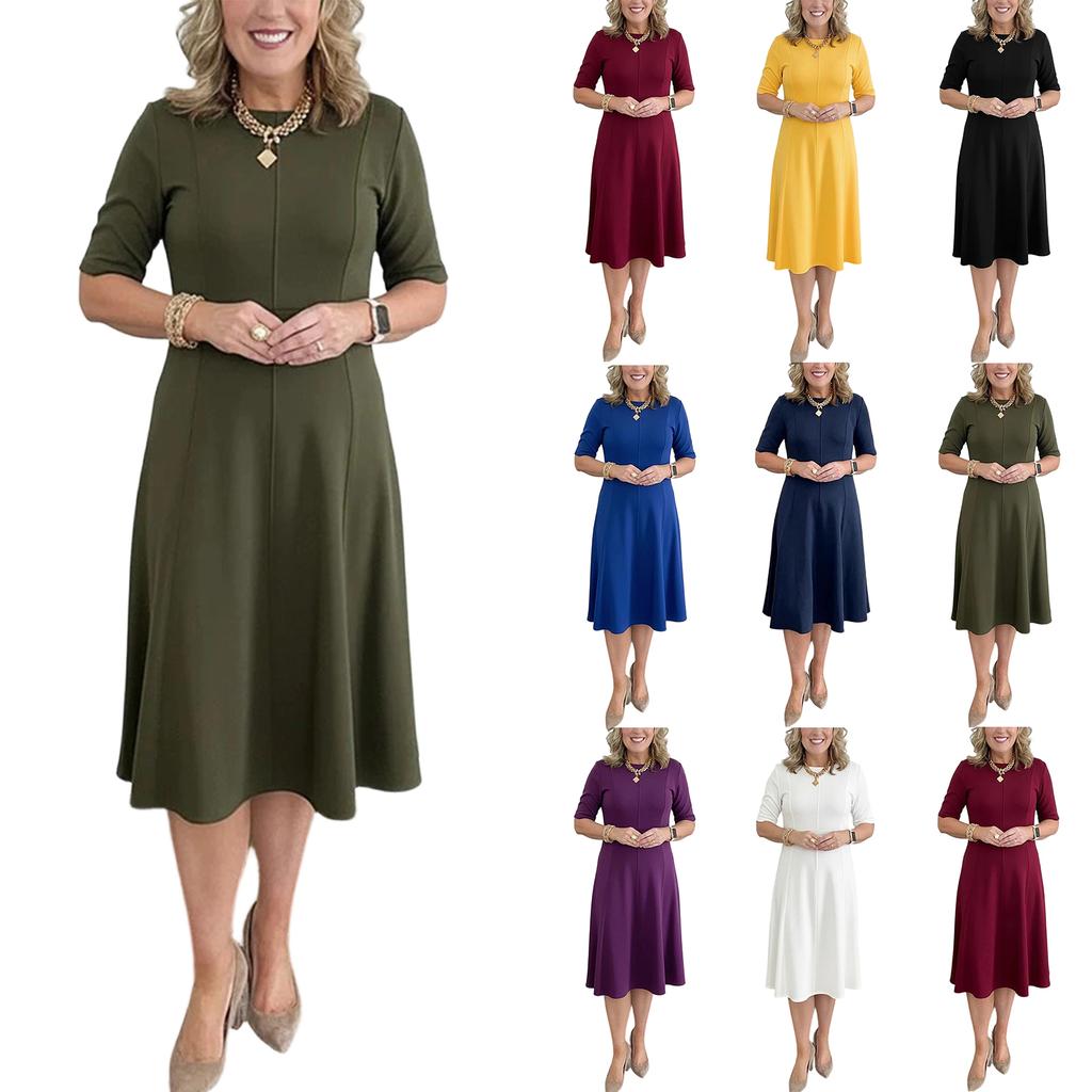 Women's Casual Elegant Short Sleeved Round Neck Dress