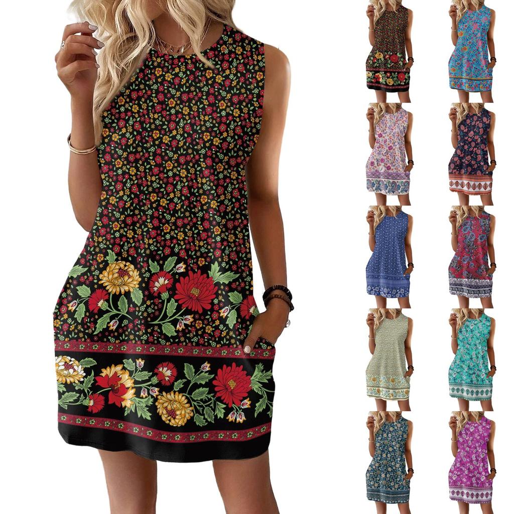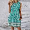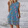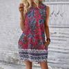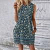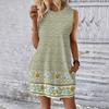 Kadın Günlük ve Moda Yuvarlak Yaka Kolsuz Baskılı Midi Boy Elbise