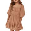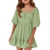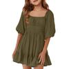 Children's Casual Bubble-Sleeve Backless Waist-Tied Bow-Pleated Dress