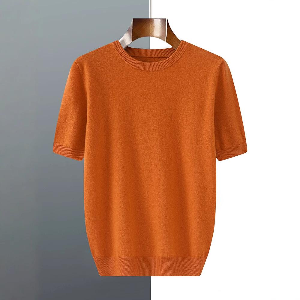 Men's Short-sleeved Fall/winter Casual Lightweight T-shirt with Simple Texture for Casual Office Wear, Round-neck Base Layer Sweater, Knitted Garment