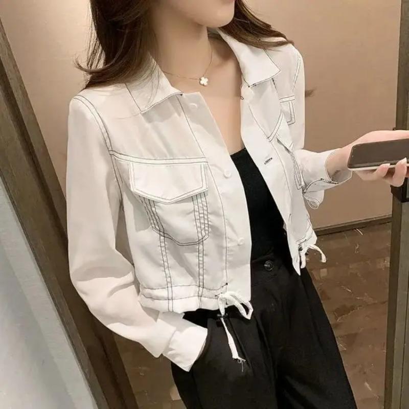 Versatile for Wearing Outside Careful Machine High Waist For Long Sleeved Jacket for Women New Design Sense Niche Short Shirt