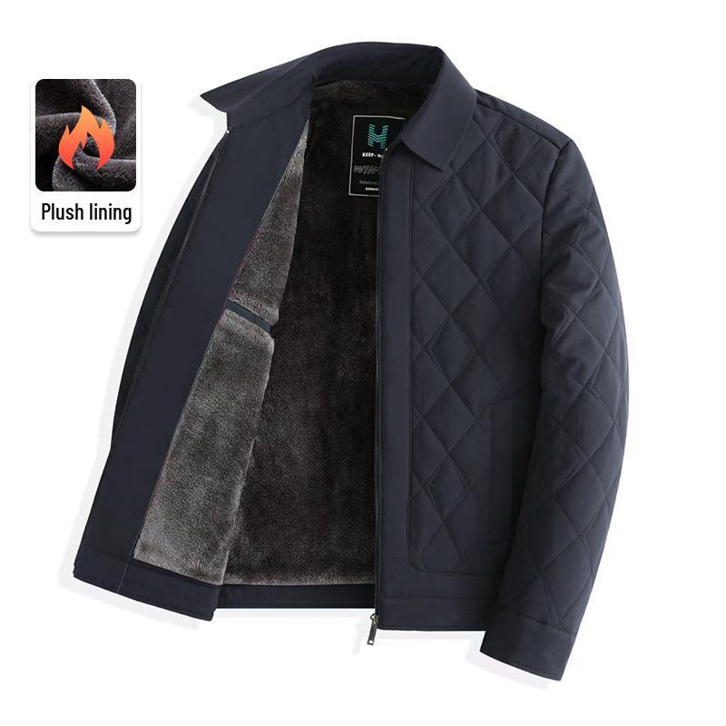 Stay warm and stylish this autumn and winter with this plus velvet thickened cotton jacket, designed specifically for middle-aged and elderly men. Featuring a luxurious warm lapel, this coat is crafted from high-quality polyester fiber, ensuring both comfort and durability. Ideal for chilly weather, it provides excellent insulation while maintaining a classic, timeless look. Perfect for any outdoor activity or casual occasion, this jacket combines functionality with a sophisticated design to keep you cozy throughout the colder months.