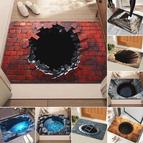 This 3D visual effect floor mat features a unique three-dimensional design that adds a realistic and artistic touch to any space, enhancing your homes decor with style and personality.