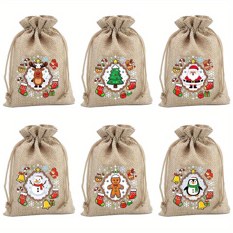 6pcs Festive Christmas Gift Bags - 6 Assorted Colors, Elastic Drawstring Closure, Ideal for Holiday Party Decorations
