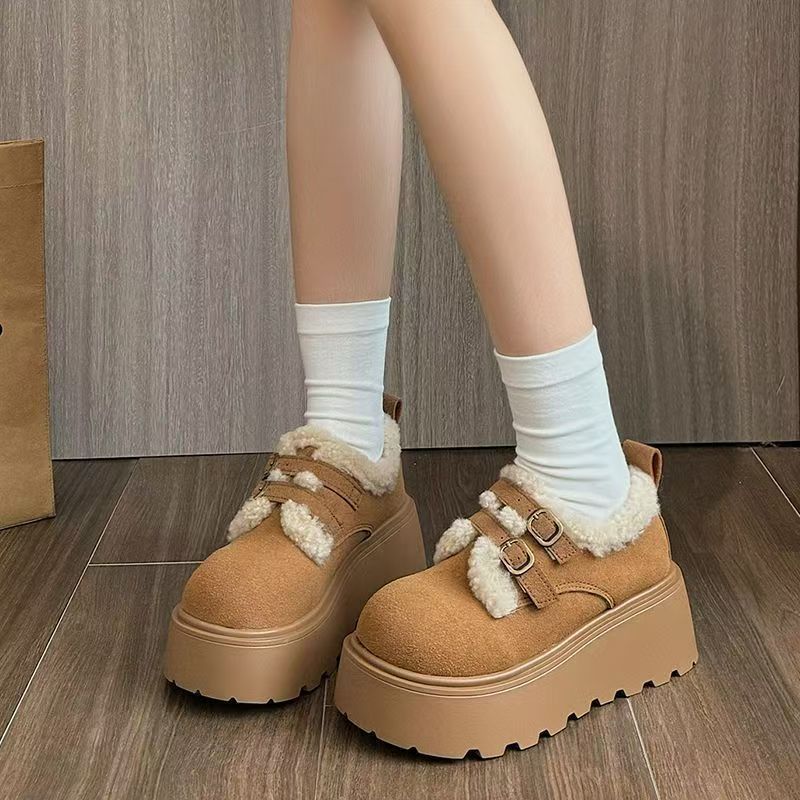 Low top plus winter slope heel college wind hair fleece snow boots fluff thin Birkenstock cotton shoes women's tide muffin
