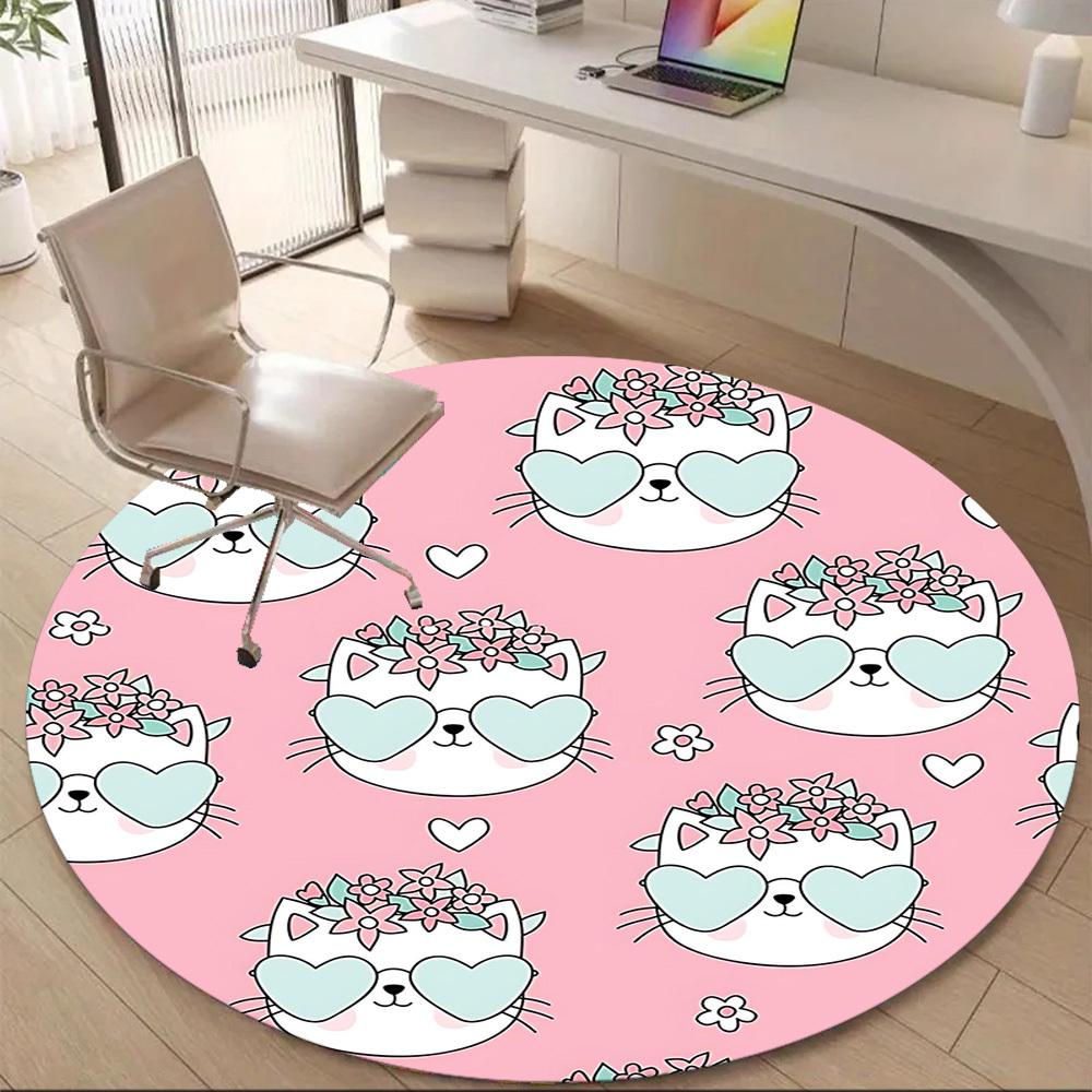 1PC Cat Floral Office Round Area Rug, Mat Suitable For Office, Under Office Chairs Bedroom Living Room Home Decor, Room Deco