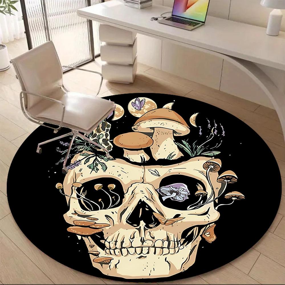 1pc Mushroom Skull Office Round Area Rug, Under Office Chairs Bedroom Living Room Home Decor, Room Deco