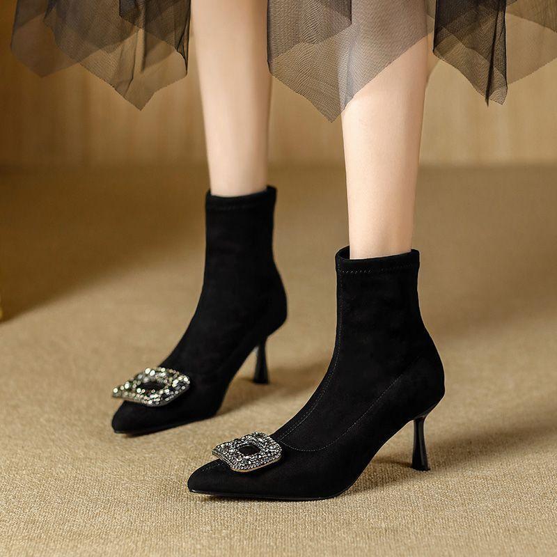 Skinny Heel Socks Boots Skinny Elastic Season Single Boots Short Boots Women's Skinny Boots Fashion Sweet Pointed Short Tube