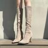Pointed apricot suede high-heeled boots women's elastic thin boots thick heels but knee-thick high boots