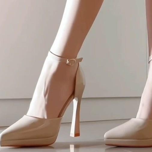 Sexy season summer waterproof table women's black single shoes pointed one-word strap high heels medium thick heel sandals
