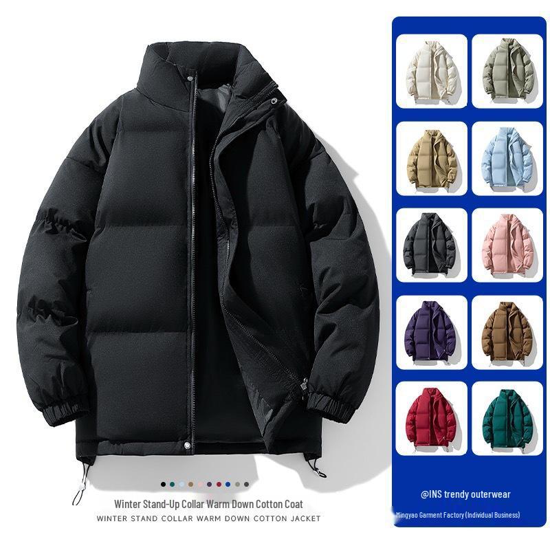Stay warm and stylish this winter with this thick cotton jacket, designed for both men and couples. Its stand-up collar adds a touch of sophistication while providing extra warmth during the colder months. Made from high-quality polyester fiber, the jacket offers a soft and comfortable feel, perfect for everyday wear. The loose fit ensures a relaxed and versatile look, making it easy to pair with any outfit. Available in solid colors, this bread suit jacket is a timeless addition to your winter wardrobe.