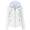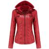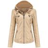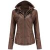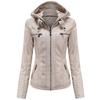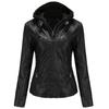 --Bir Deri Ceket İki Stil - Bayan ceketimizin çıkarılabilir başlığı, şık bir kapüşonlu bisikletçi ceketi ile rahat bir stand yaka bombardıman ceketi arasında farklı görünümleri değiştirmeniz için uygundur.