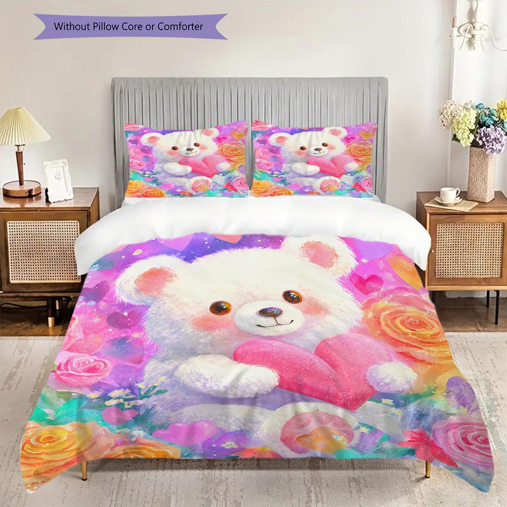 Bear Doll Pattern Bedding Quilt Set Quilt Cover Pillowcase Home Decoration Birthday Gift (1 * duvet cover + 2 * pillowcase, without core)