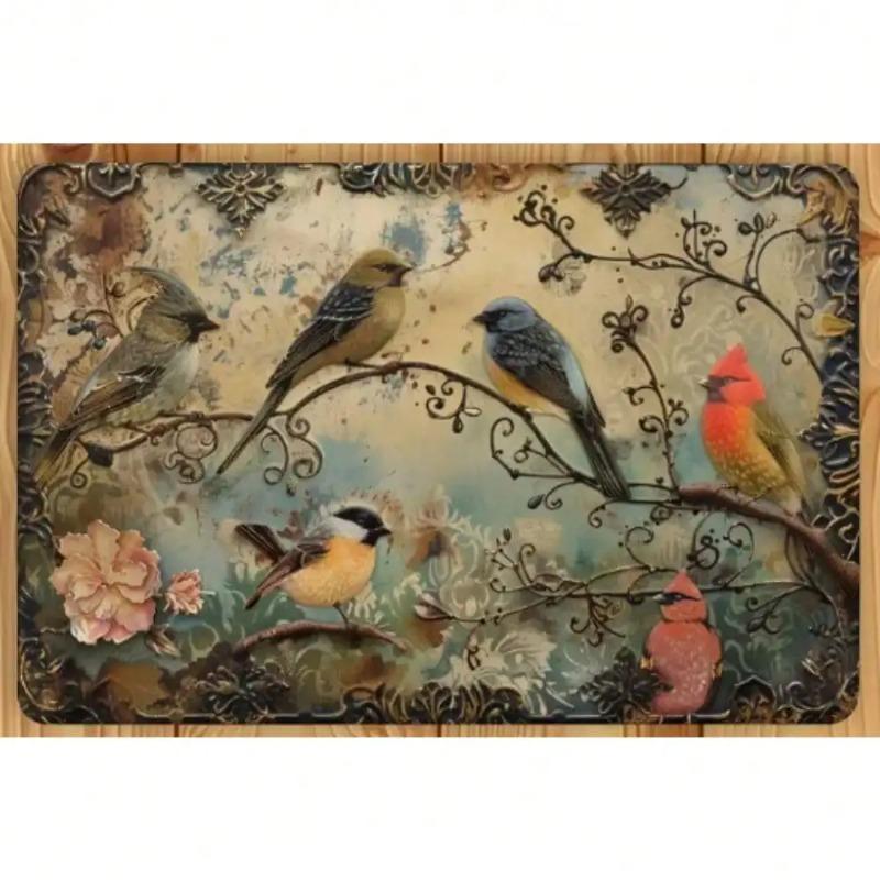 Vintage 3D Embossed Bird Metal Wall Art Rustic Farmhouse Floral Garden Decor Sign