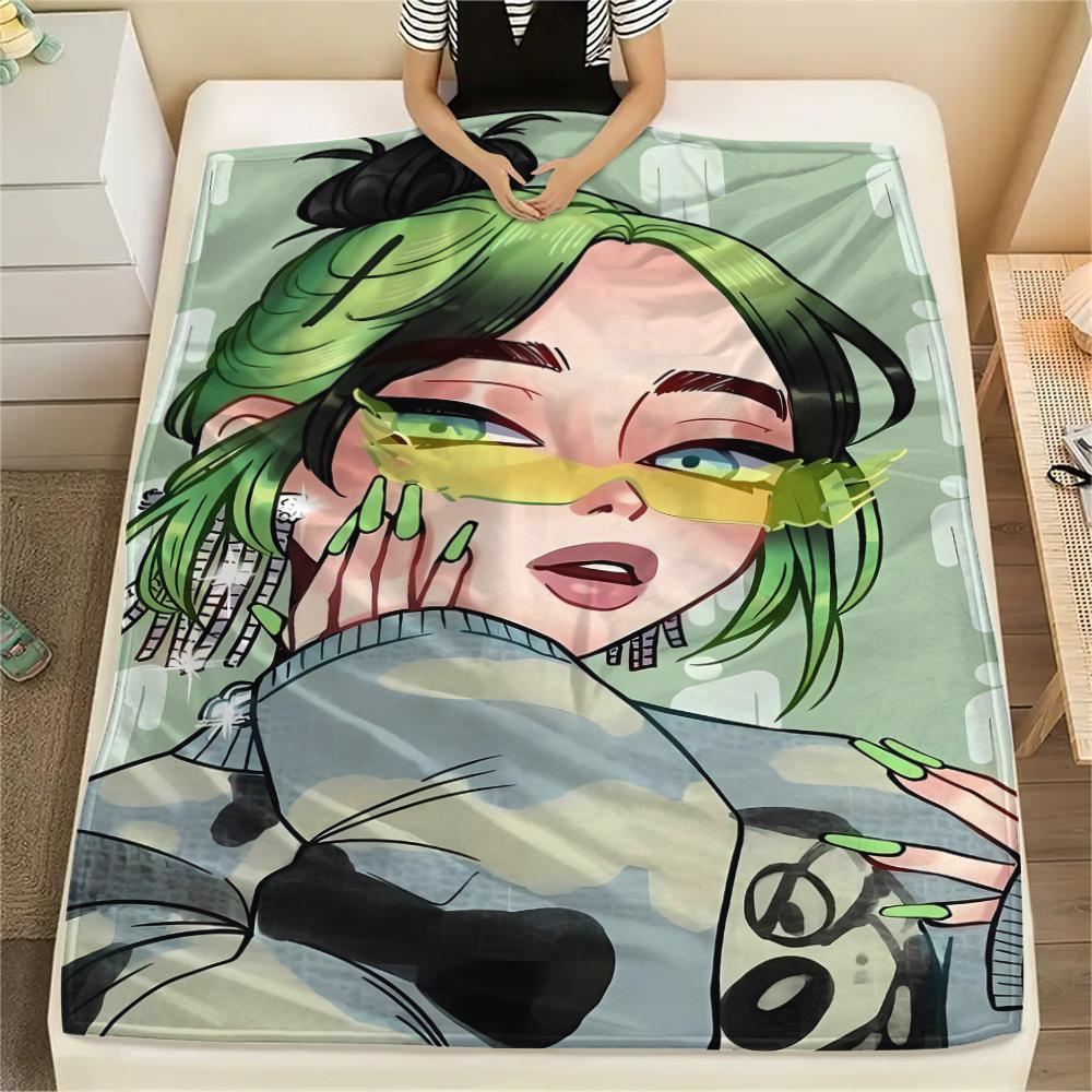 1PC Billie Eilish Print Flannel Blanket, High quality All Seasons, Home Decor, Warmth and Comfort, Perfect for Christmas Gifts
