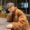 Men's Coffee Brown Corduroy Cotton Jacket - Retro Loose Fit, Stand Collar Winter Outerwear