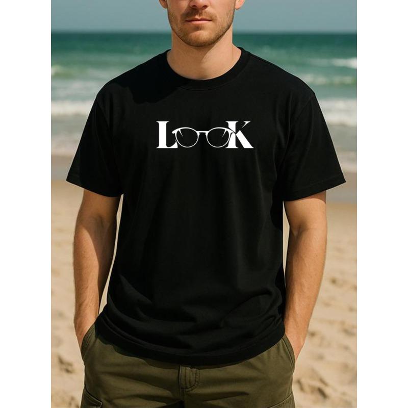 European sizes Creative Text Print, Casual Short-sleeved T-shirt, Very Versatile for Fitness Training, Men's Casual Short-sleeved Round-neck