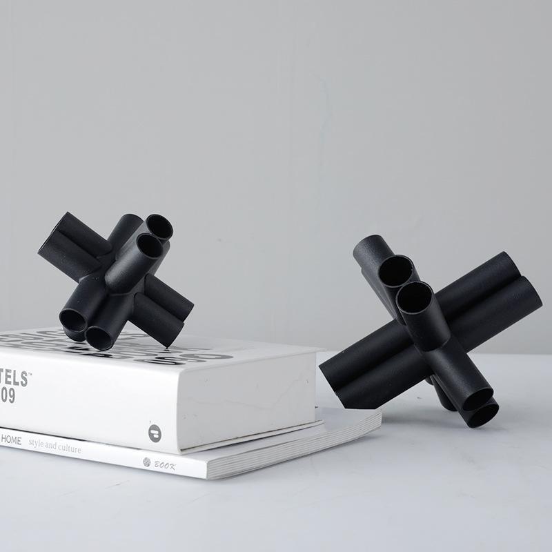 Metal Handicraft Geometric Hollow Pipe Cross Star Black Cross Knot Metal Decorative Figurines Home Decoration Accessories