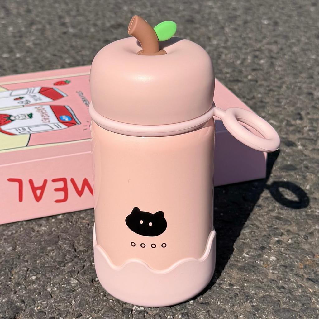 Kawaii Cat Mini Tumbler With Straw Cute Hot And Cold Stainless Steel Thermos Bottle For Tea Portable Coffee Thermal Cup Gift