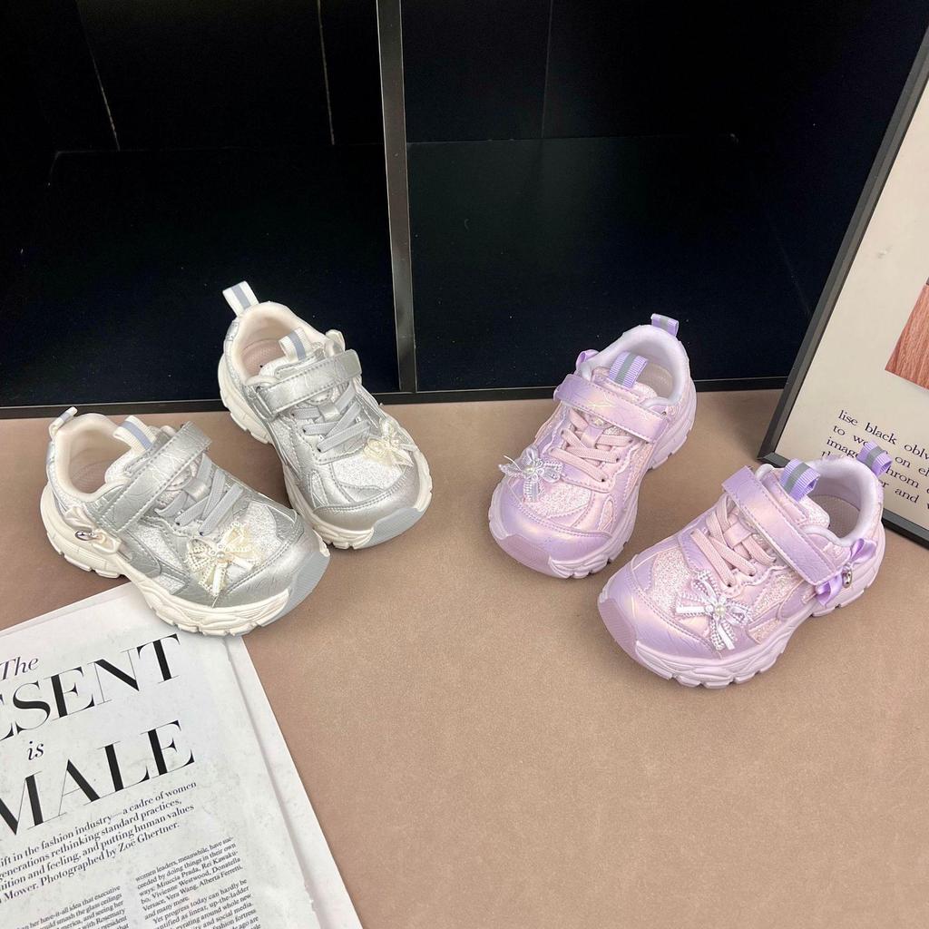 2026 Girls' Shiny Velcro Sneakers: Soft Sole, Princess Style with Rhinestones.