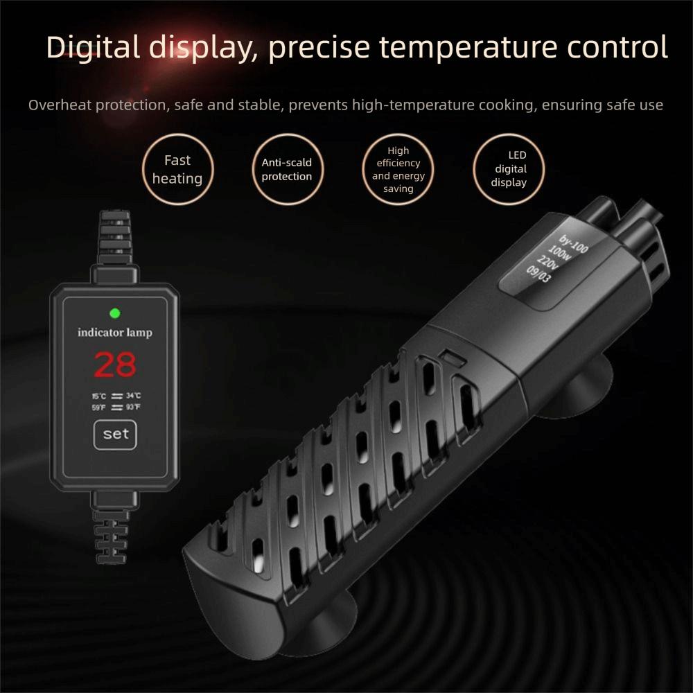 Quartz Glass Aquarium Submersible Heater Adjustable Low Water Level Fish Tank Heating Rod 30w-100w Constant Temperature Control
