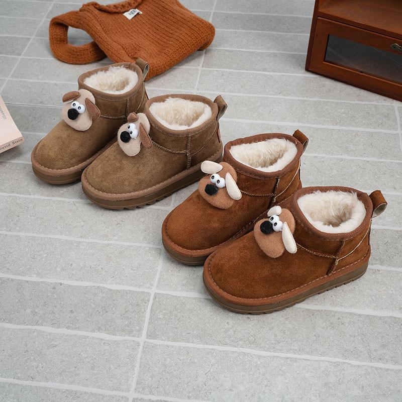 Children's Non-Slip Leather Snow Boots with Plush Lining and Cartoon Doll Decor