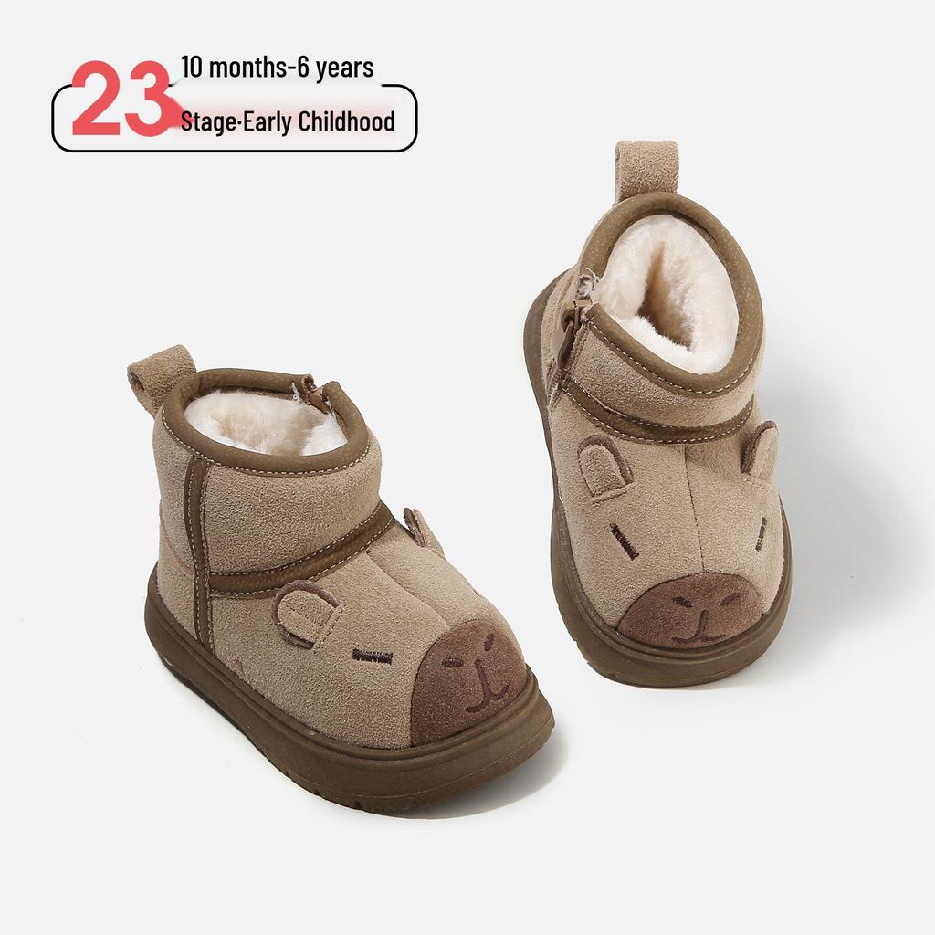 Keep your little ones' feet warm and secure with these winter snow boots, designed specifically for children. Featuring a soft sole with a reliable rubber material, these boots offer excellent traction to prevent slipping on icy surfaces. The interior is lined with cozy velvet and cotton, ensuring that kids' feet stay warm and comfortable throughout their winter adventures. Suitable for both girls and boys, these boots combine practicality and style for those chilly days.