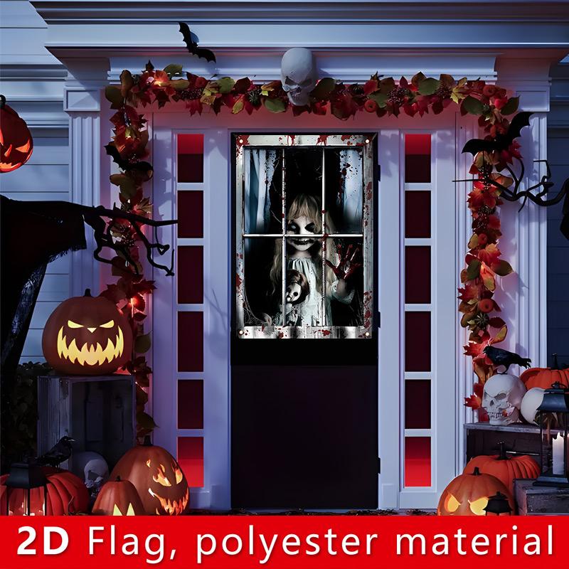 New Halloween Style 2 Pack Halloween Ghost Curtain Decorations - Female Ghost Window Cover For Indoor/outdoor Party Decor
