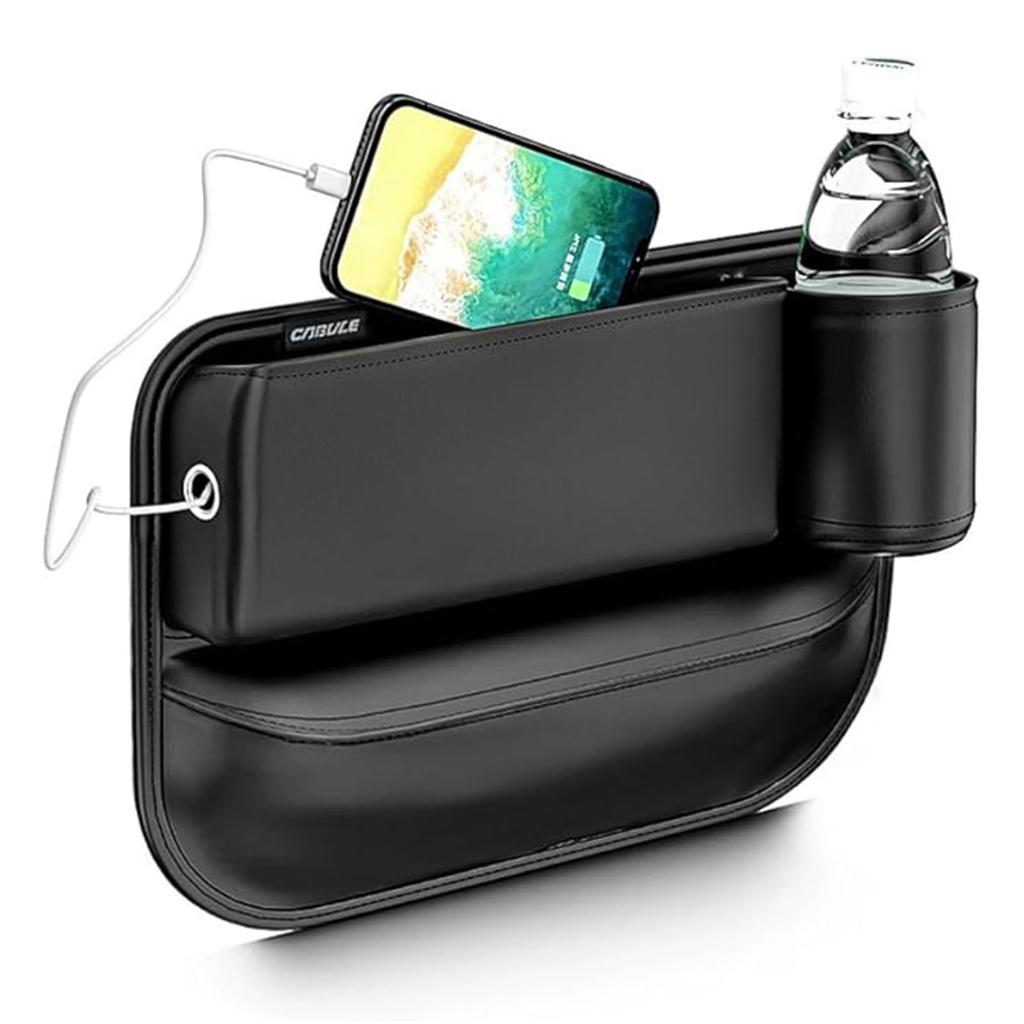Car Seat Side Gap Storage PU Leather Storage Pocket with USB Charging Universal Fit for Driver and Passenger and More Pocket, Box, Ultra-Thin, Port,