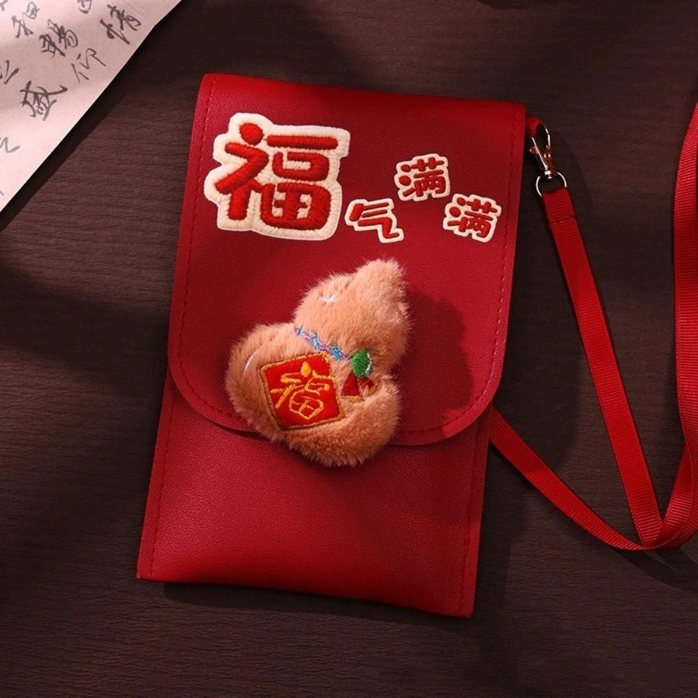 Gift Bag 3D New Year Red Envelope Traditional Cartoon Money Bag Blessing Festive PU Crossbody Bag Festival Accessory