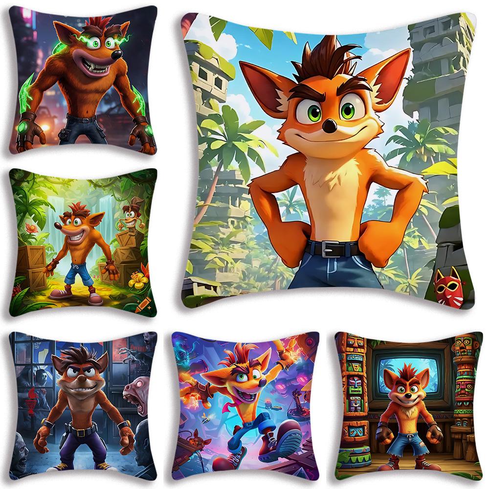 Cartoon Crashs B-Bandicoots Pillow Covers Cartoon Sofa Decorative Home Double-sided Printing Short Plush Cute Cushion Cover