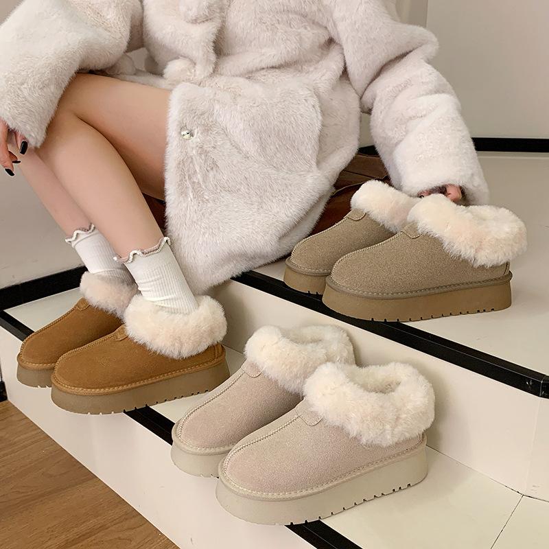 Trendy thick-soled one-pedal fluffy snow boots women's new winter velvet thickened warm outer cotton shoes