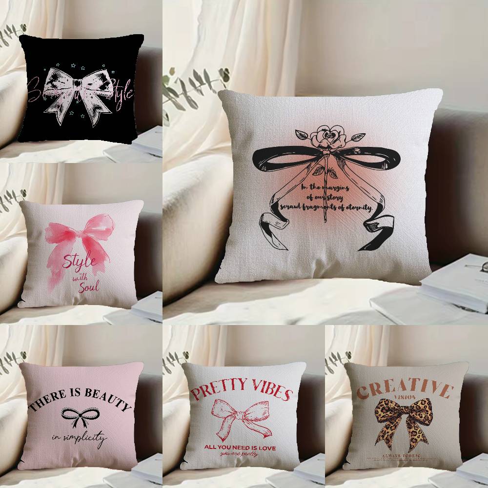 Korean Trendy Bow Pillow Case Anti-dustmite Pillowcase Invisible zipper silky short plush Sofa cushion cover