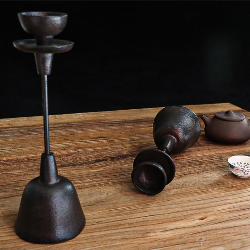 Vintage Cast Iron Candle Holder Classic Chinese Tea Ceremony Decoration Home Décor Ornament