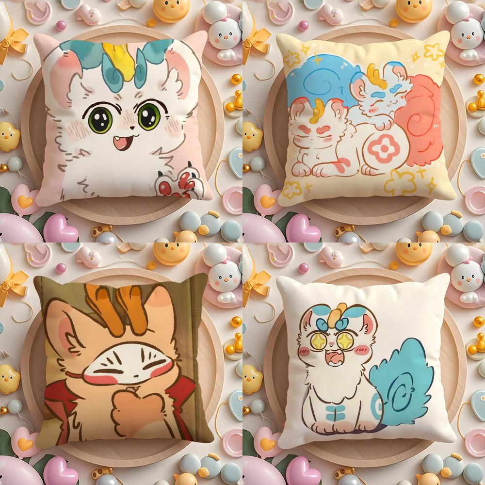 Cute You Shou Yan Cushion Cover Home & Car Multi-Scene Pillow Cover - Reversible, Soft & Durable for Daily Use