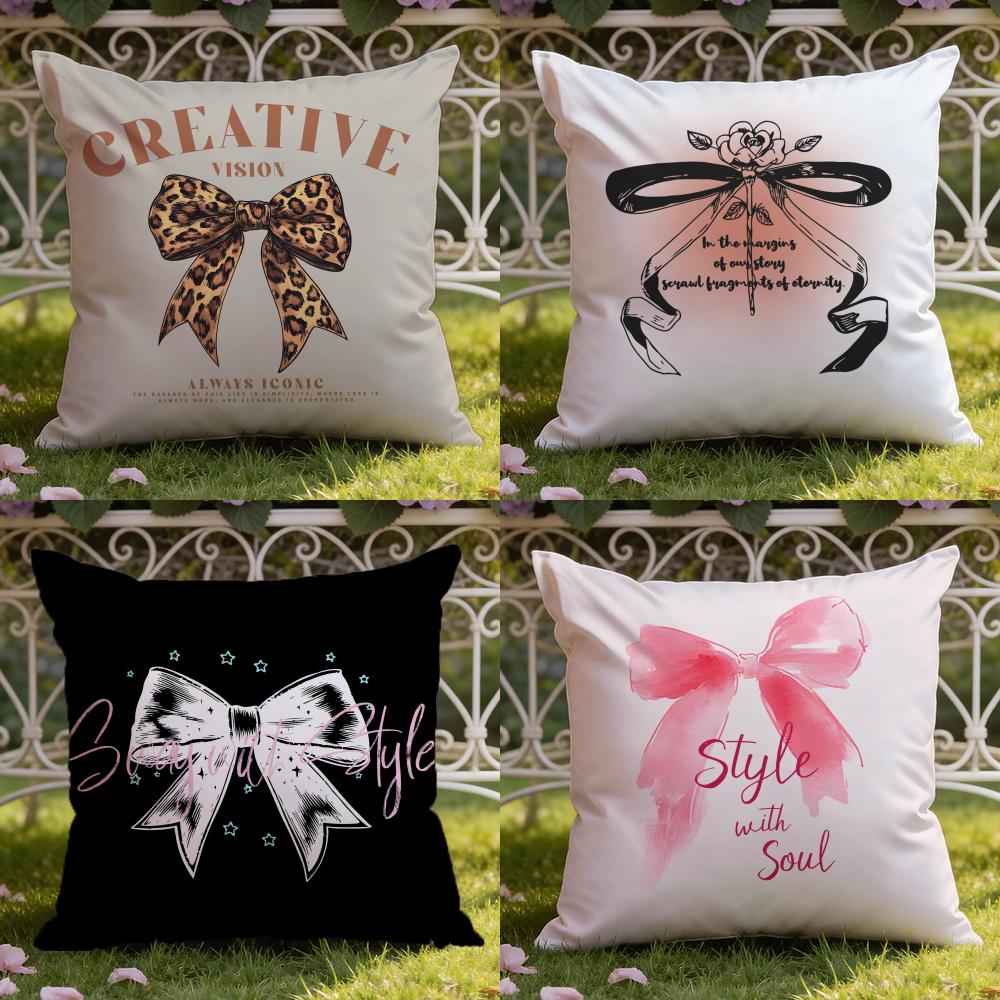 Korean T-Trendy Bow Cushion Cover Home & Car Dual-Scene Pillow Cover: Reversible for Premium Comfort