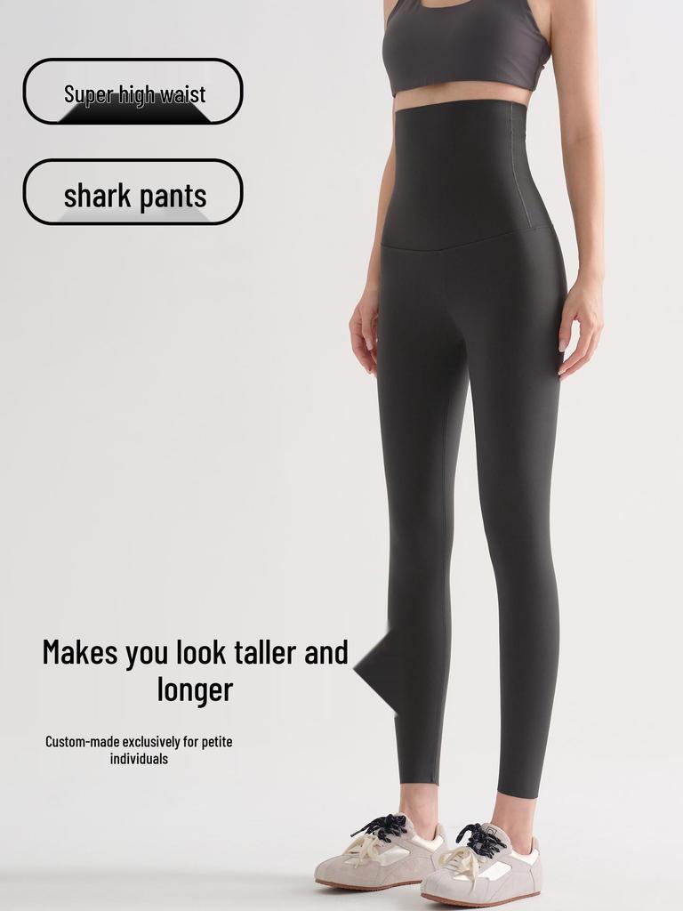 Women's High Waist Slimming Yoga Pants - Spring/Autumn Elastic Base Layer, 8-Point Length for Short Women