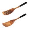 2Pcs/Set Acacia Wood Cooking Utensil Long Handle Spatula+Slotted Spatula Kitchen Tools (BPA Free, No FDA)