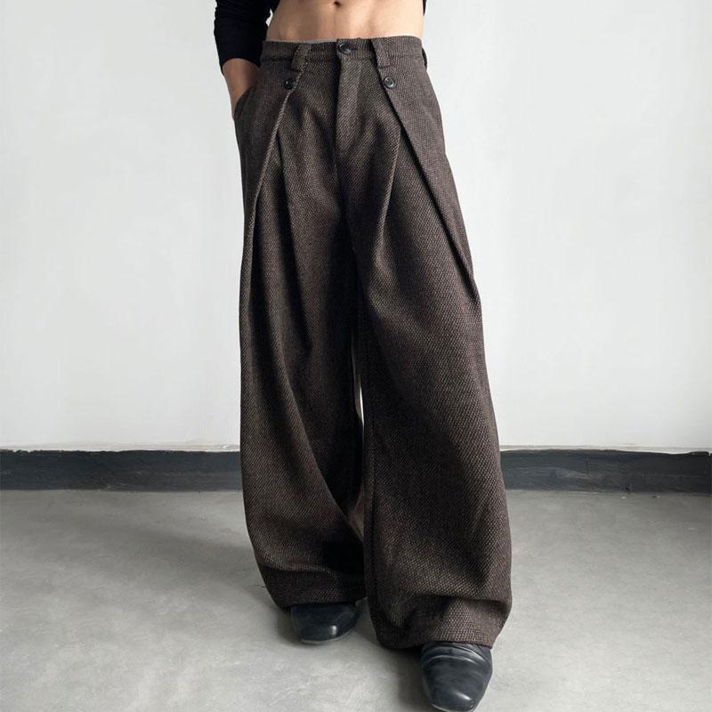 Fashion Men's Oversized Wide Leg Trousers Vintage Pleated Loose Fit Casual Pants