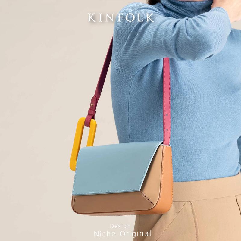 Ladies' New Niche Trendy Bag with Contrasting Colors, Geometric Splicing Acrylic Square Buckle, Single Shoulder Armpit Bag, Small Square Bag
