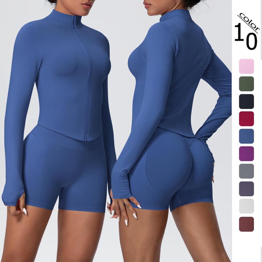 Women's Seamless Stand Collar Zip-Up Yoga Set with High Waist Leggings